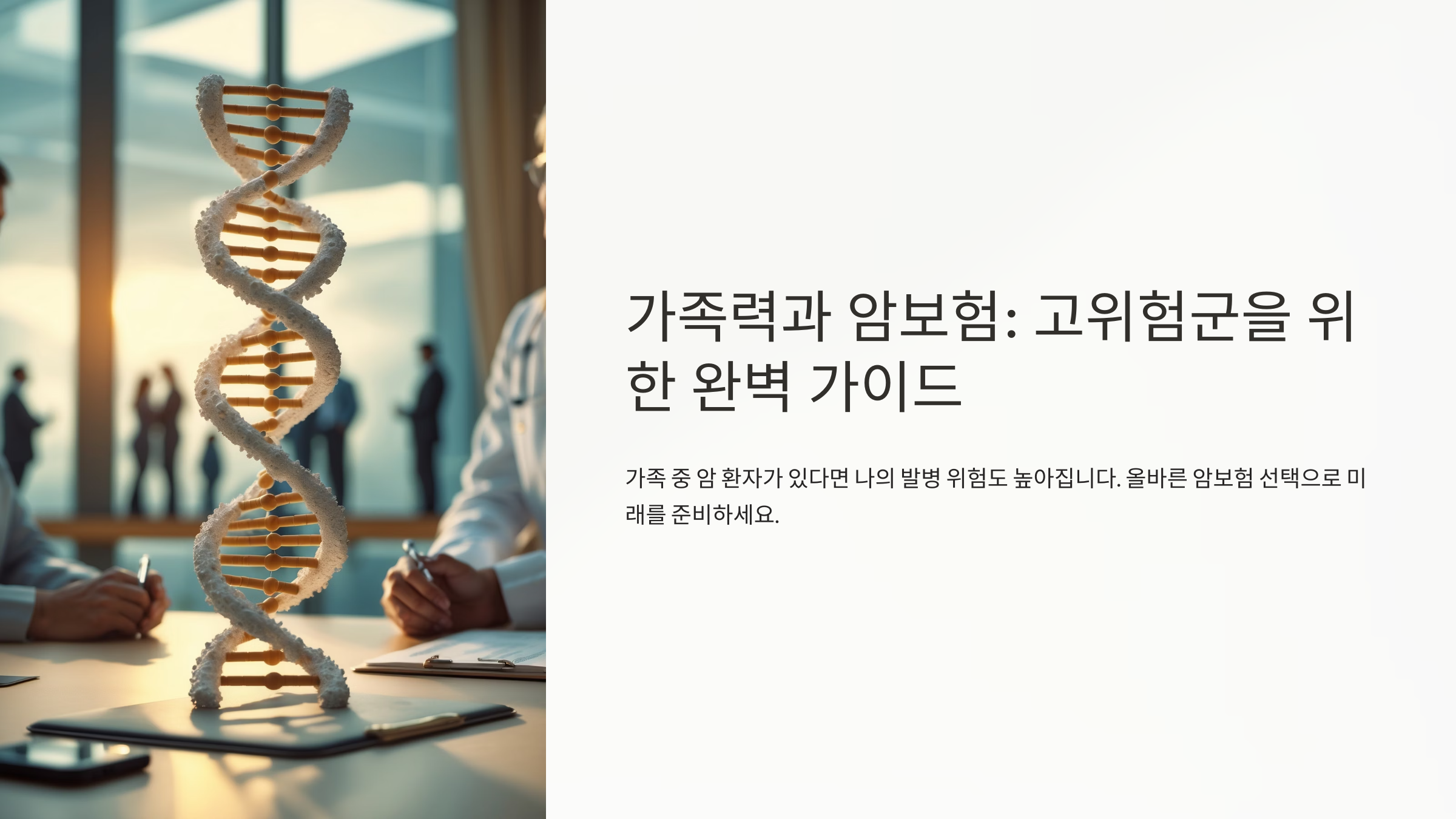 지금 이 순간에도 많은 분들이 가족력 때문에 암보험 고민하고 있어요. 늦기 전에 내 유전 위험도를 고려해 조치해두는 게 좋아요. 보험은 사고 후가 아니라, 사고 전에 준비하는 거라는 말 아시죠?