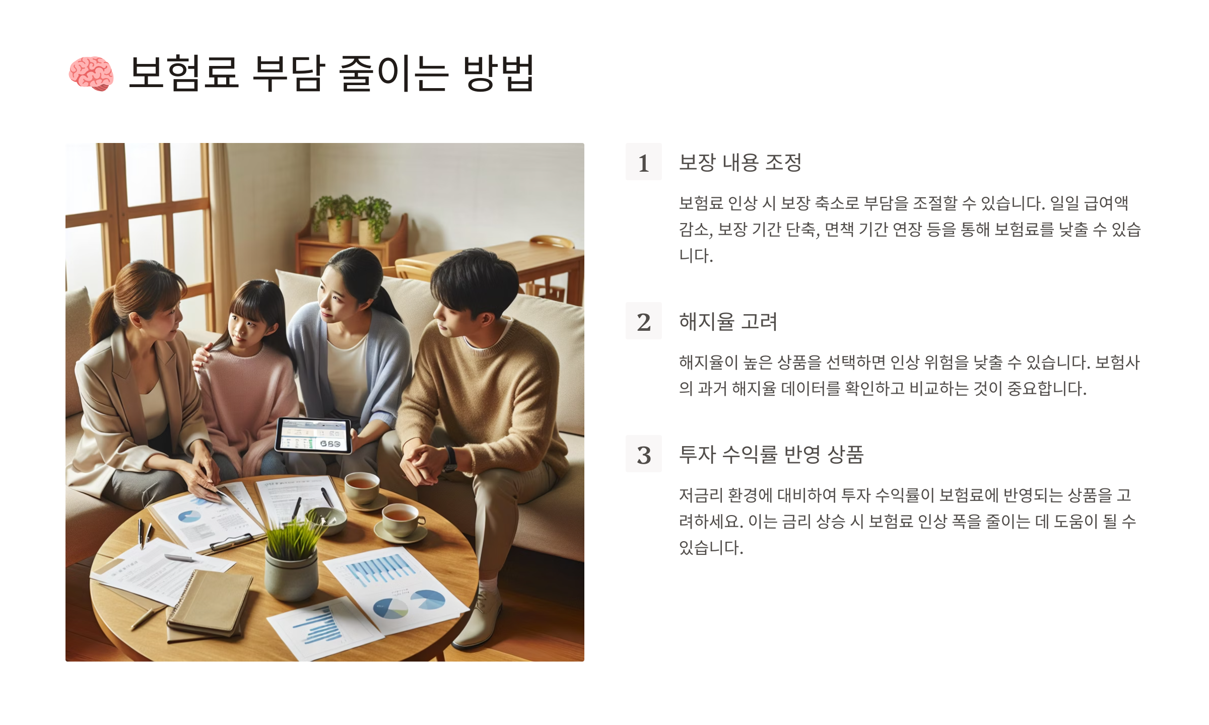| 보장금액 조정 | 불필요한 과다 보장 줄이기 |