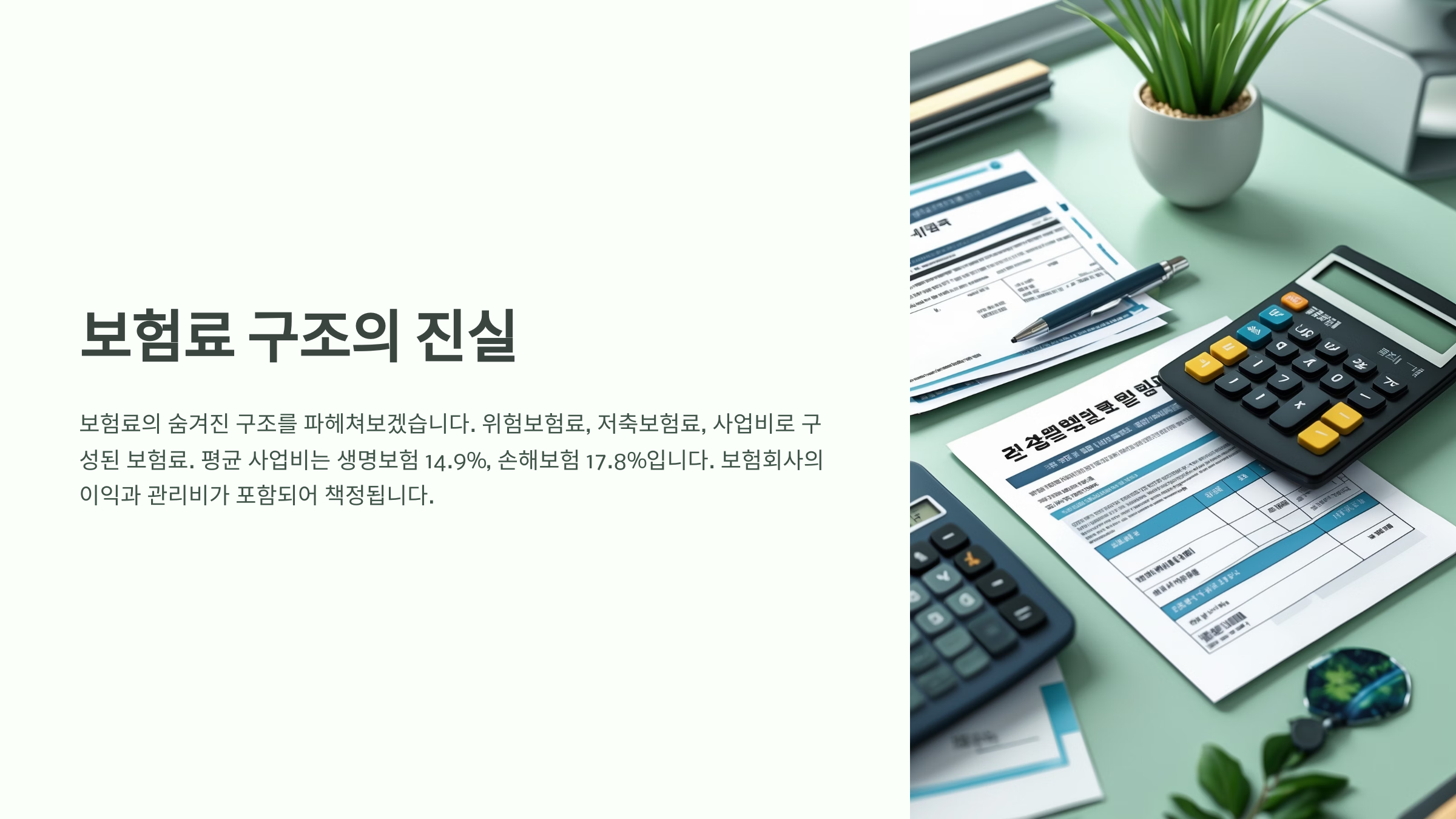 보험료는 단순히 "보장받기 위한 비용"이 아니에요. 매달 나가는 20만 원의 보험료 중 실제로 보장받을 수 있는 부분은 일부에 불과하답니다. 나머지는 사업비, 수수료, 운영비, 설계사 수당 등으로 빠져나가요.