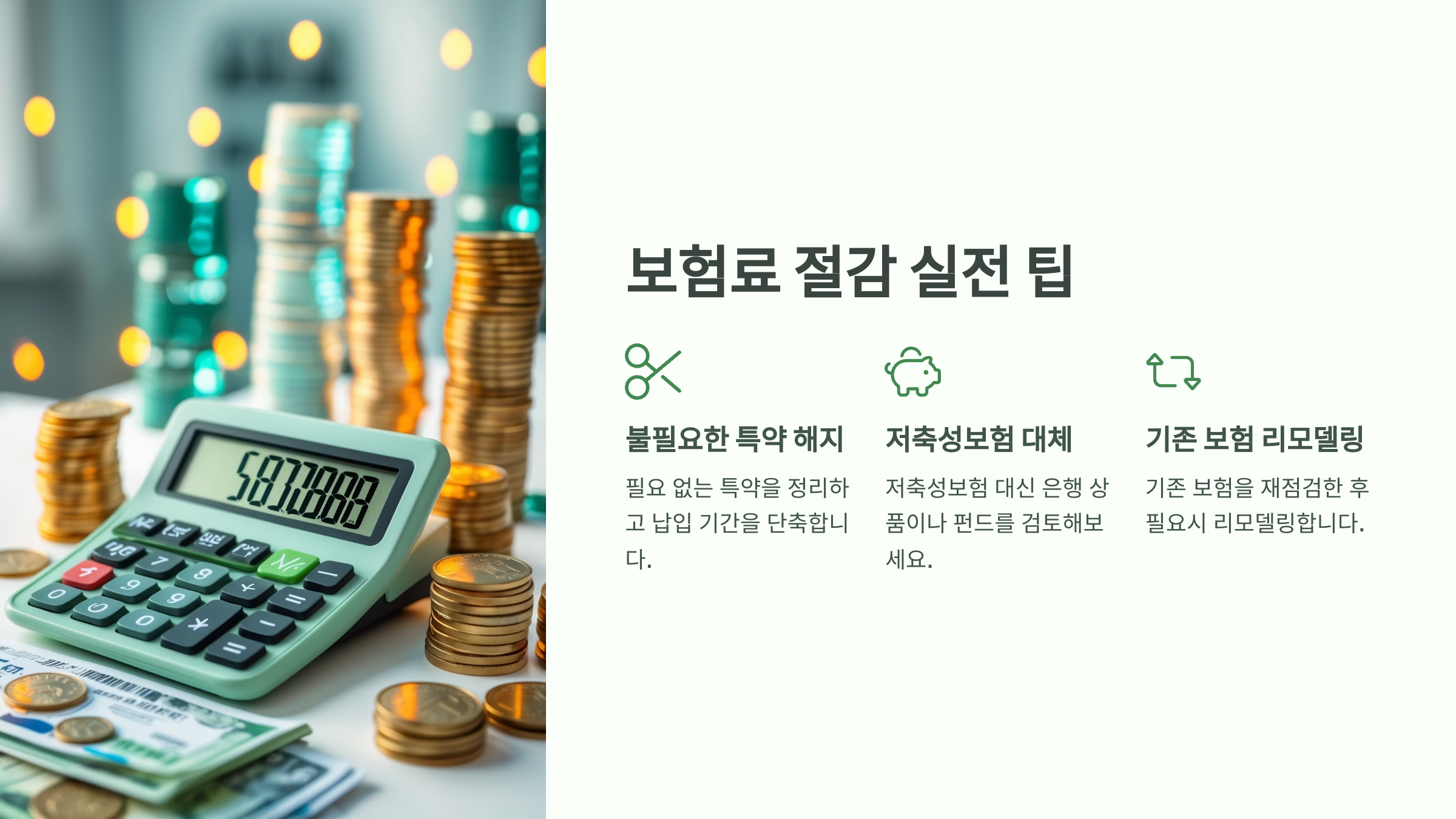 지금부터 보험료를 반으로 줄일 수 있는 아주 실전적인 방법들을 하나하나 소개해볼게요. 무턱대고 줄이는 게 아니라, 불필요한 보장은 걷어내고 꼭 필요한 보장만 남기는 전략이에요.