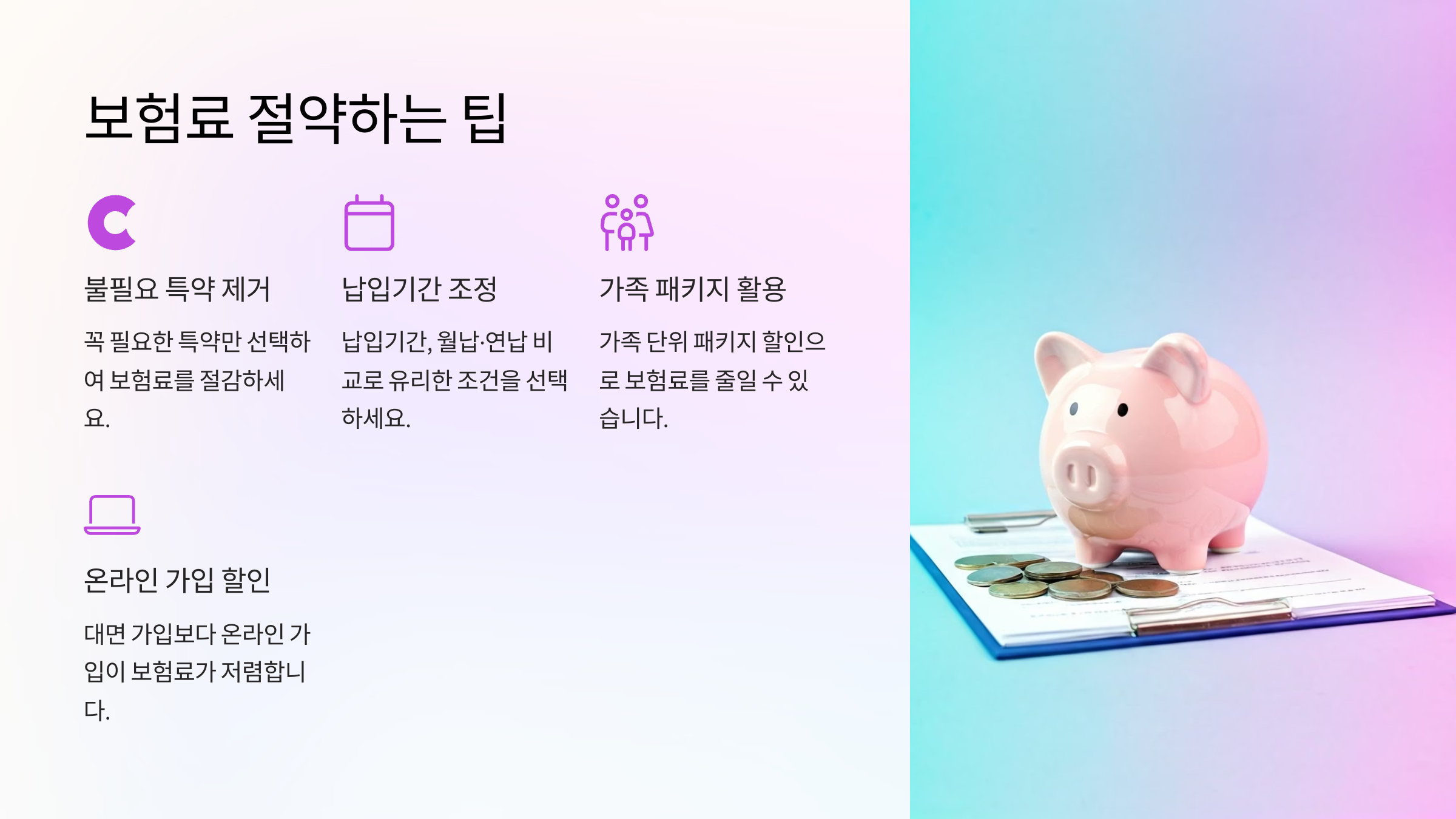 보험료는 줄이고 보장은 지키는 현명한 가입! 지금 바로 실천해보세요. 🧠