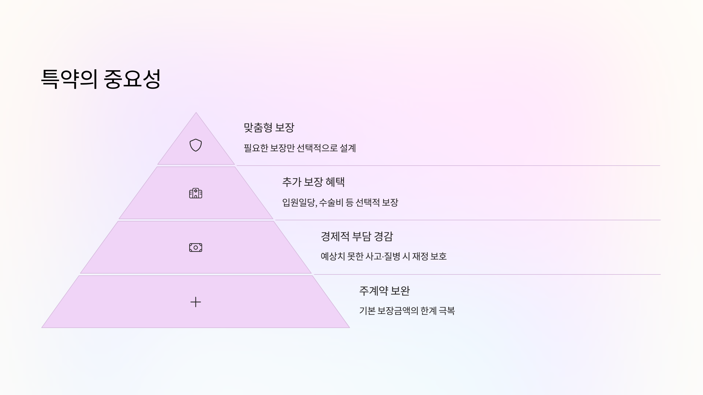 이처럼 특약은 단순한 추가가 아니라, 삶의 방식에 맞춘 ‘나만의 보험’ 설계를 위한 핵심이에요.