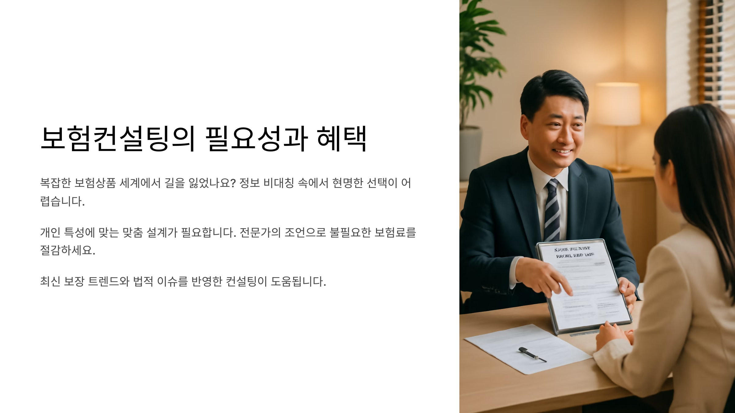 보험은 단순한 금융상품이 아니에요. 나와 가족의 삶을 지켜주는 '보장 수단'이에요. 그래서 어떤 보험을 선택하느냐에 따라 미래가 달라질 수 있어요. 보험컨설팅은 그 시작을 돕는 첫걸음이에요.