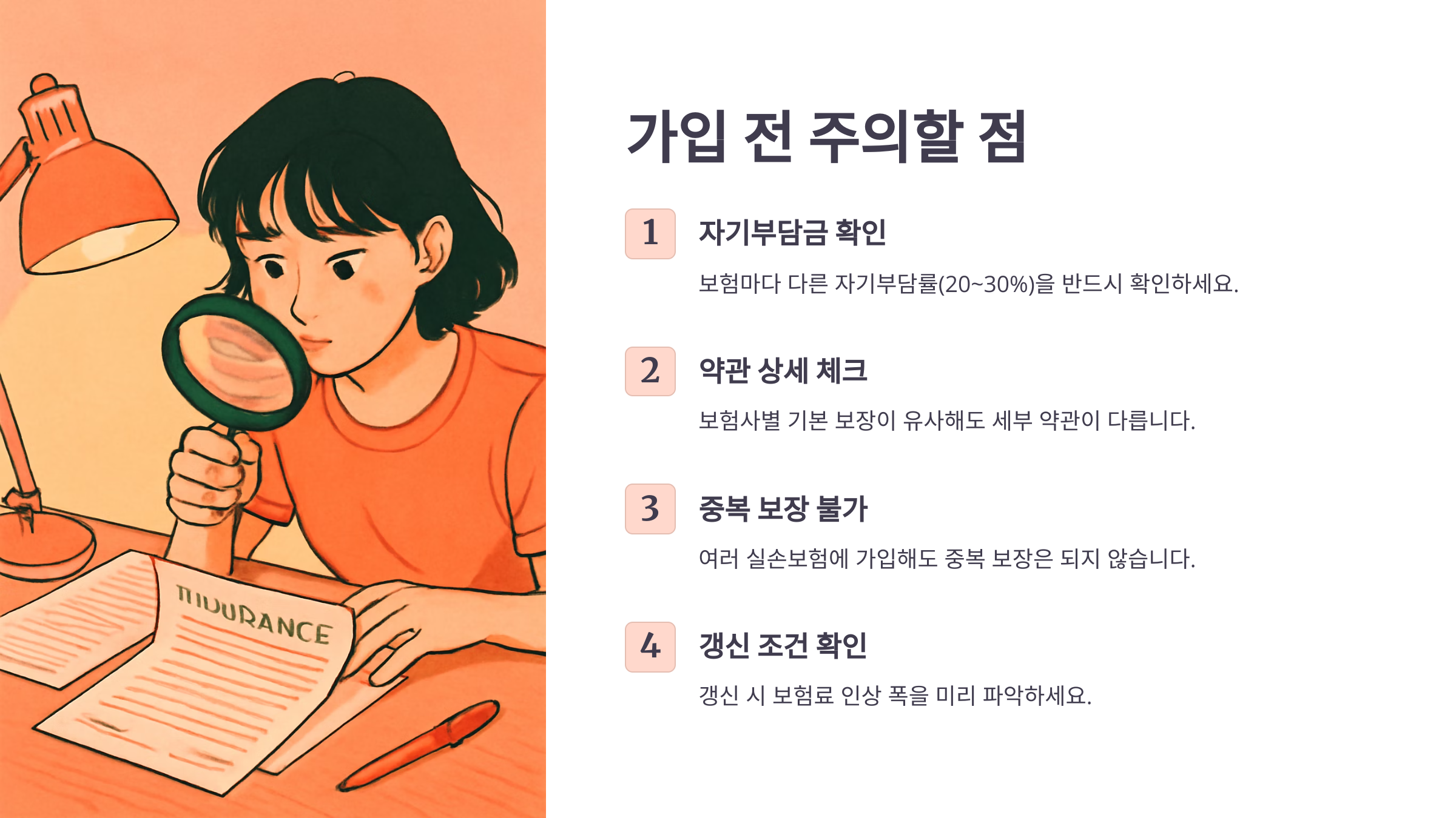 | 중복 가입 | 보장은 하나, 보험료는 두 배 |