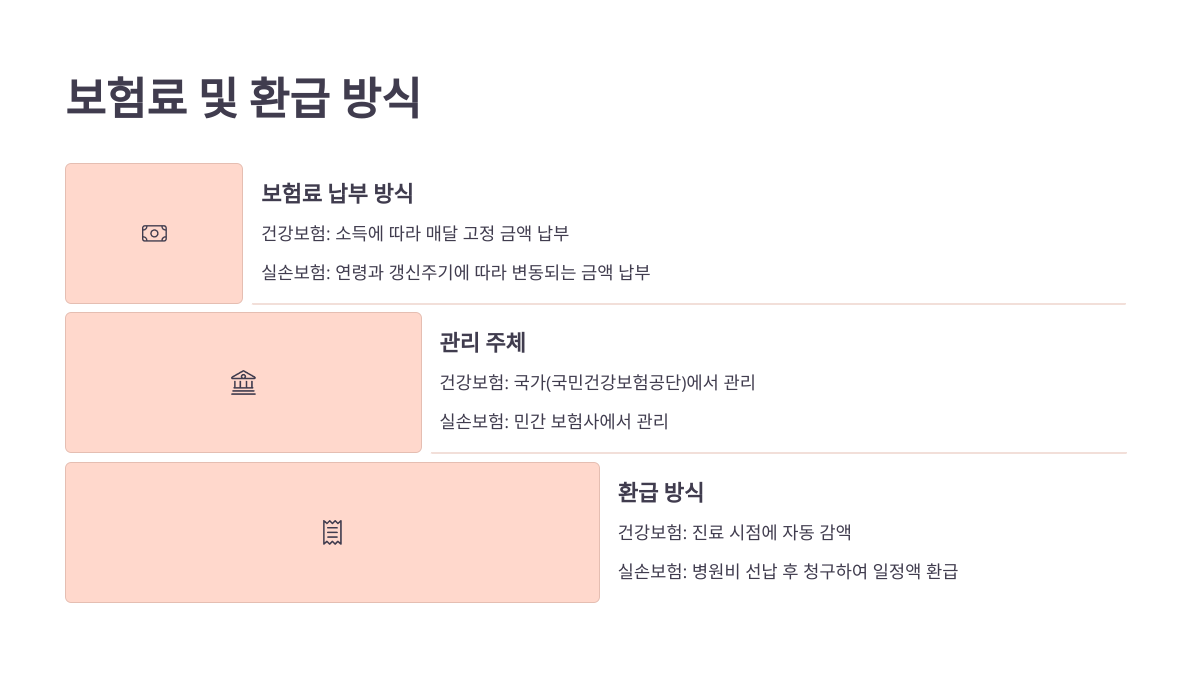 | 구분 | 실손보험 | 건강보험 |