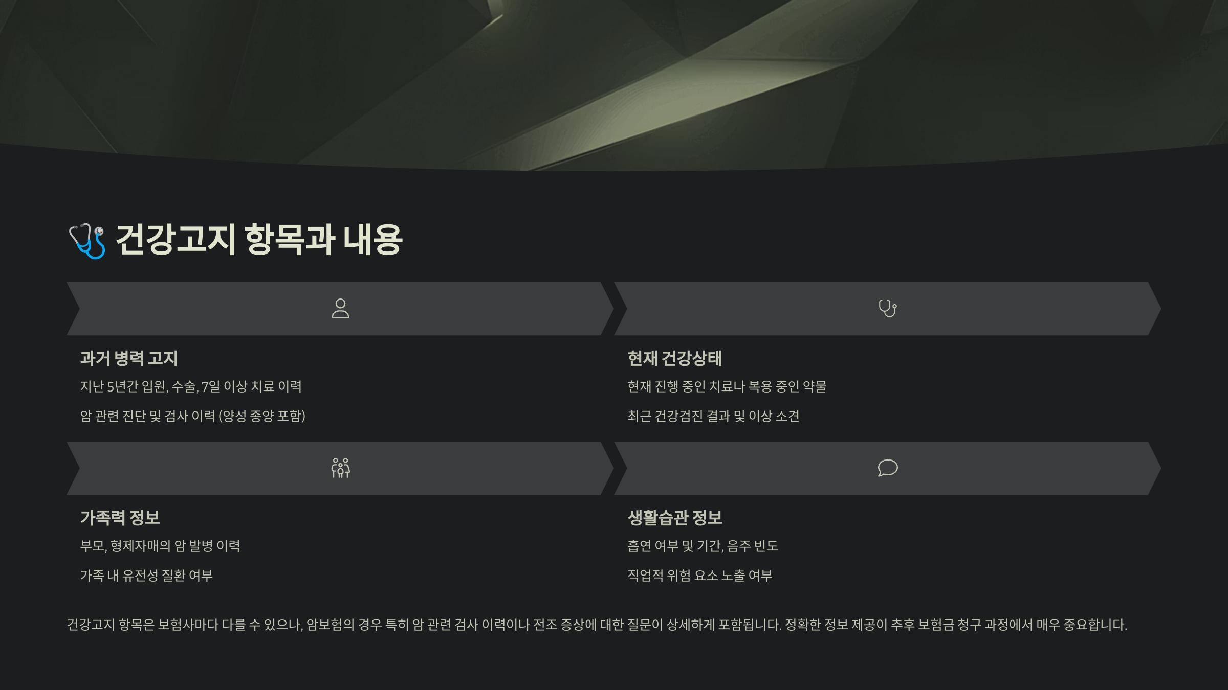 건강고지는 단순히 '건강하세요?'라고 묻는 게 아니라 아주 구체적인 내용을 확인하는 절차예요. 예를 들어, 최근 3개월 이내에 병원에서 검사받은 적이 있는지, 1년 이내 치료받은 병이 있는지, 최근 5년 이내 입원, 수술, 진단받은 병명 등을 아주 상세히 물어요. 이건 보험사마다 질문 항목의 개수나 표현이 조금 다를 수 있어요.