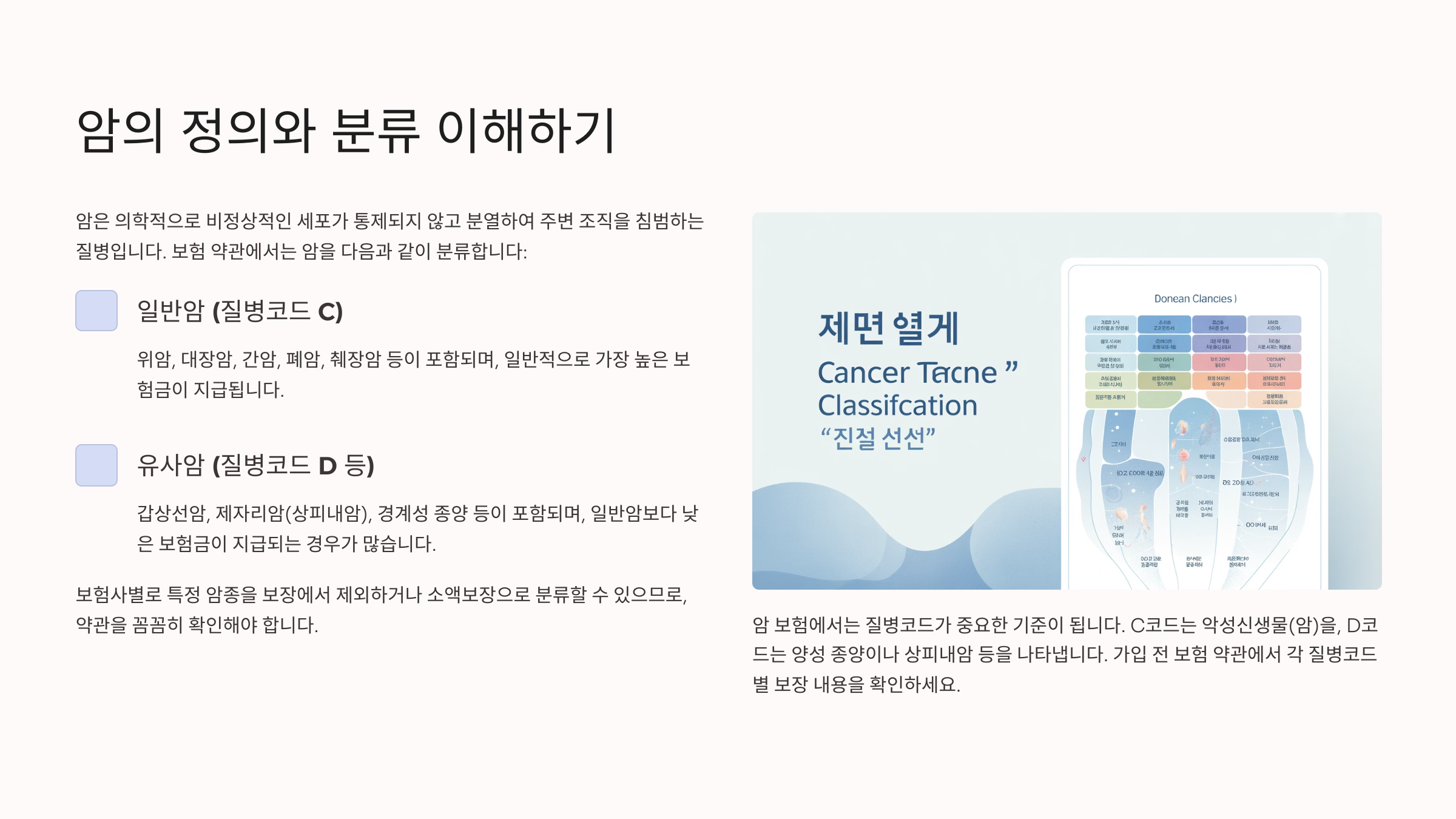 암의 종류별 분류를 정확히 이해하면, 어떤 보험에 가입해야 하고 어떤 암에서 보장을 받을 수 있는지를 명확히 할 수 있어요.
