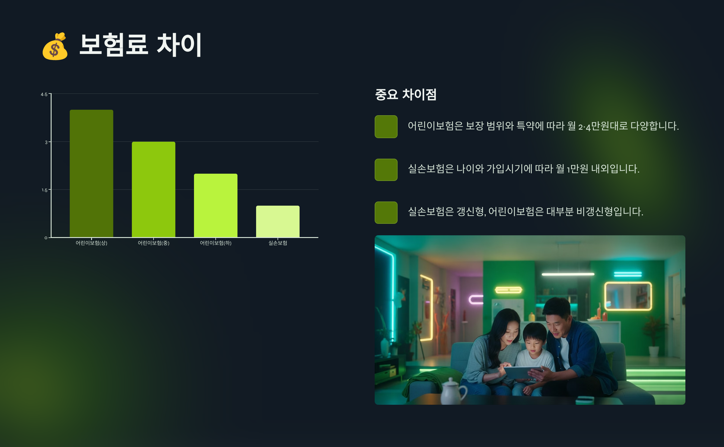 특히 보험료가 저렴한 유아기~아동기 시절에 가입해두면, 성인이 되어서도 유리한 조건을 유지할 수 있기 때문에 시기적으로도 지금이 가장 좋아요! ⏳