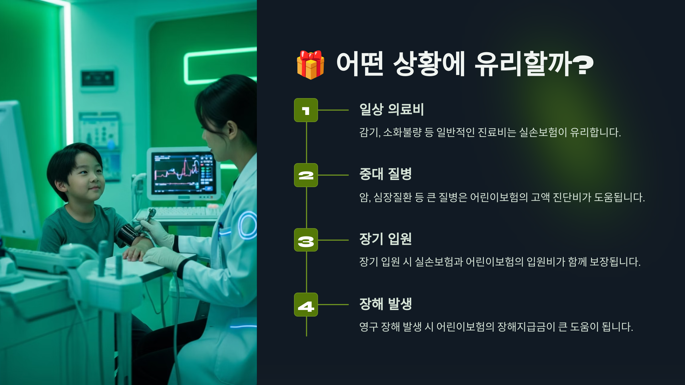 이처럼 두 보험을 함께 갖추면, 아이가 감기로 병원에 가든, 큰 질환에 걸리든 모두 대비할 수 있어요. 병원비 걱정도 줄고, 부모 입장에서는 심리적으로 훨씬 든든하죠.
