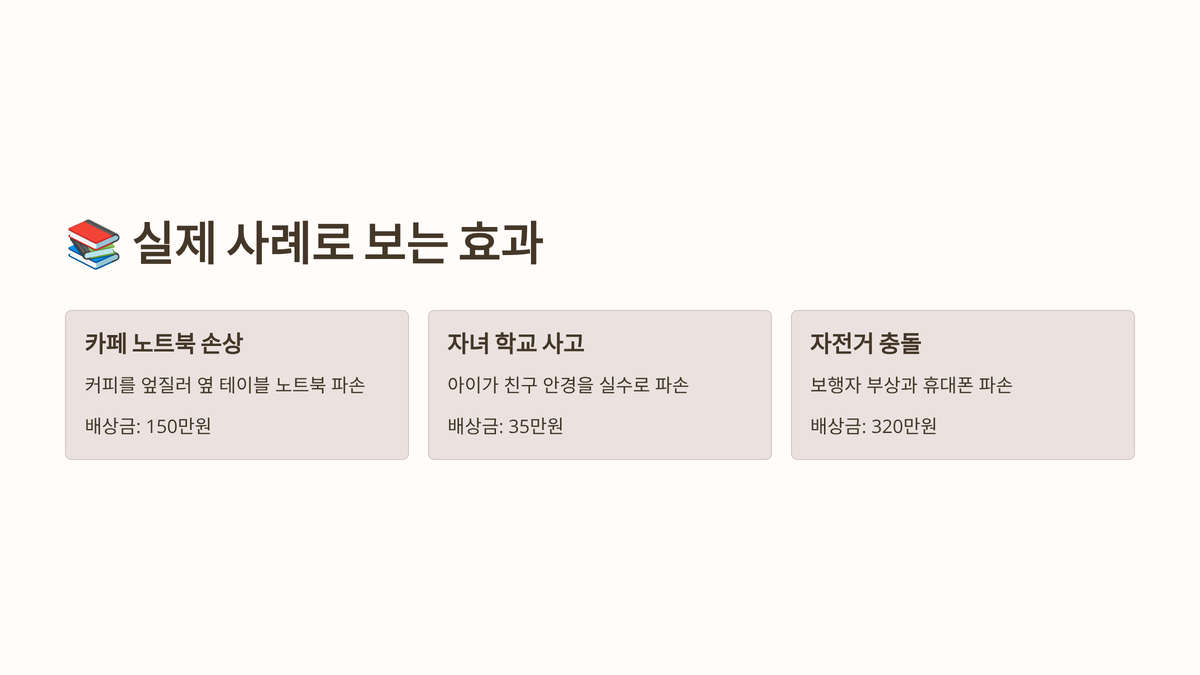 예를 들어 아이가 자전거를 타다가 실수로 행인의 다리를 다치게 했다면, 병원비나 위자료 등을 보험사에서 대신 지급하게 돼요. 피해자에게도 신속한 보상이 가능하고, 가해자 입장에서도 금전적 부담을 크게 덜 수 있어요. 💸