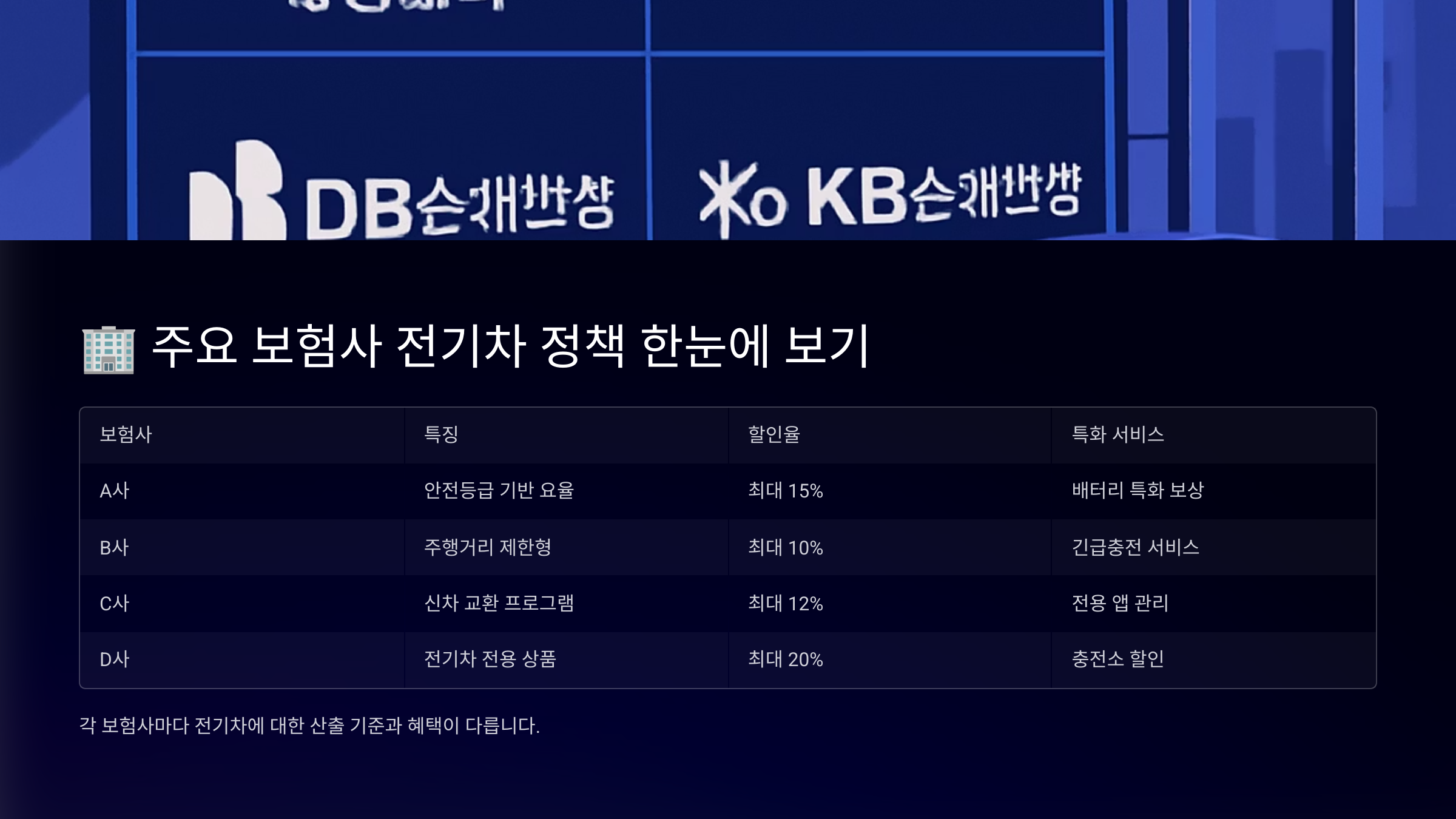 🏢 보험사 전기차 정책 비교표
