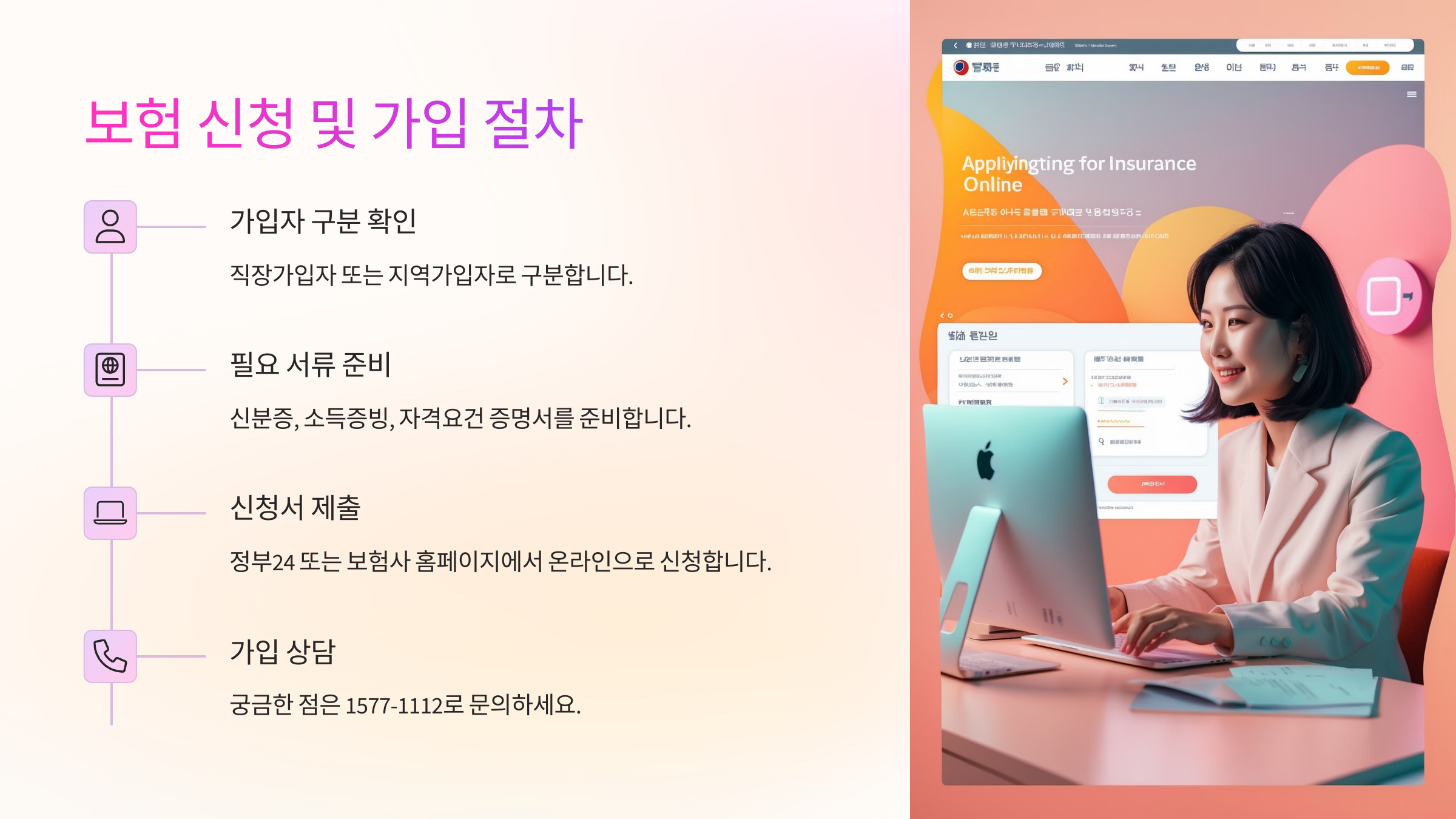 정부 지원 보험은 가입 대상자가 되면 간단한 절차를 통해 손쉽게 신청할 수 있어요. 대부분의 보험은 온라인으로도 신청이 가능하기 때문에, 스마트폰이나 컴퓨터만 있으면 집에서도 쉽게 가입할 수 있어요. 특히 요즘은 코로나19 이후 비대면 서비스가 강화되어, 온라인 신청이 훨씬 편리해졌어요.