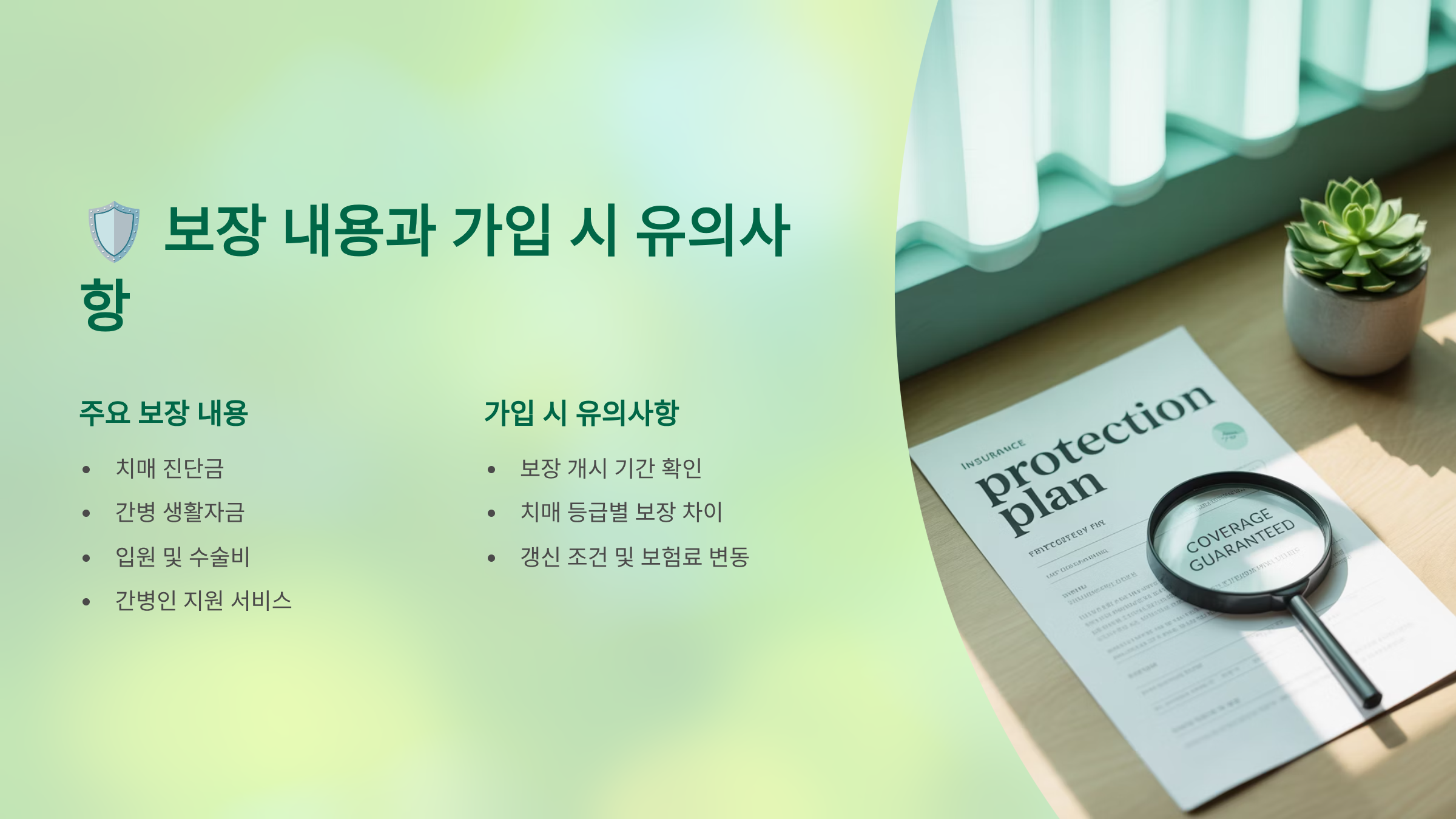보험료만 보고 선택하지 말고, 중증 진단 시 얼마나 오랫동안 간병비가 지급되는지, 경증 진단금은 포함되어 있는지 꼭 체크해보세요. 📌