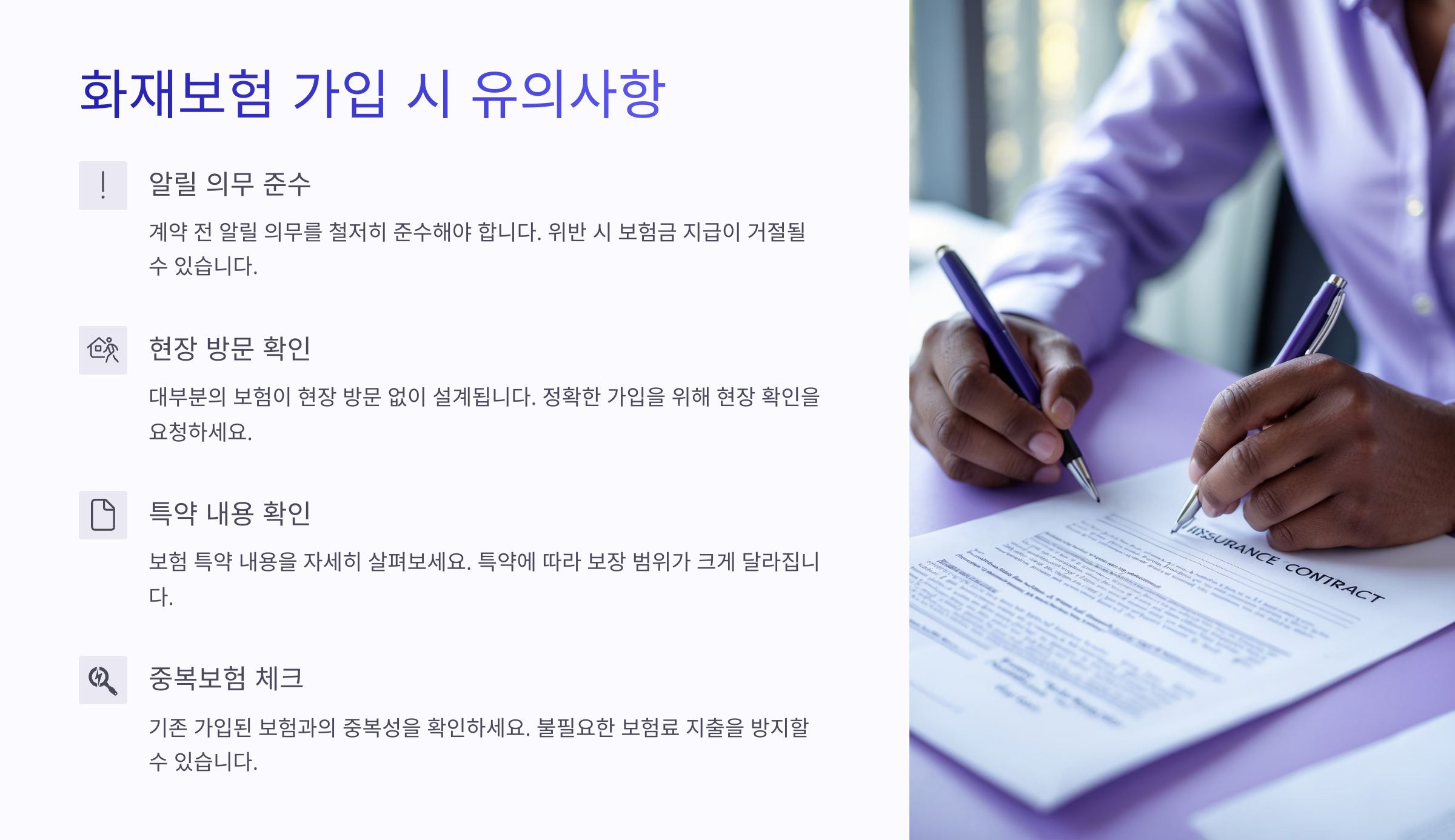 가입 전 꼼꼼한 준비와 비교를 하면, 실제 화재 사고가 났을 때 훨씬 든든하게 보장받을 수 있답니다! 😊