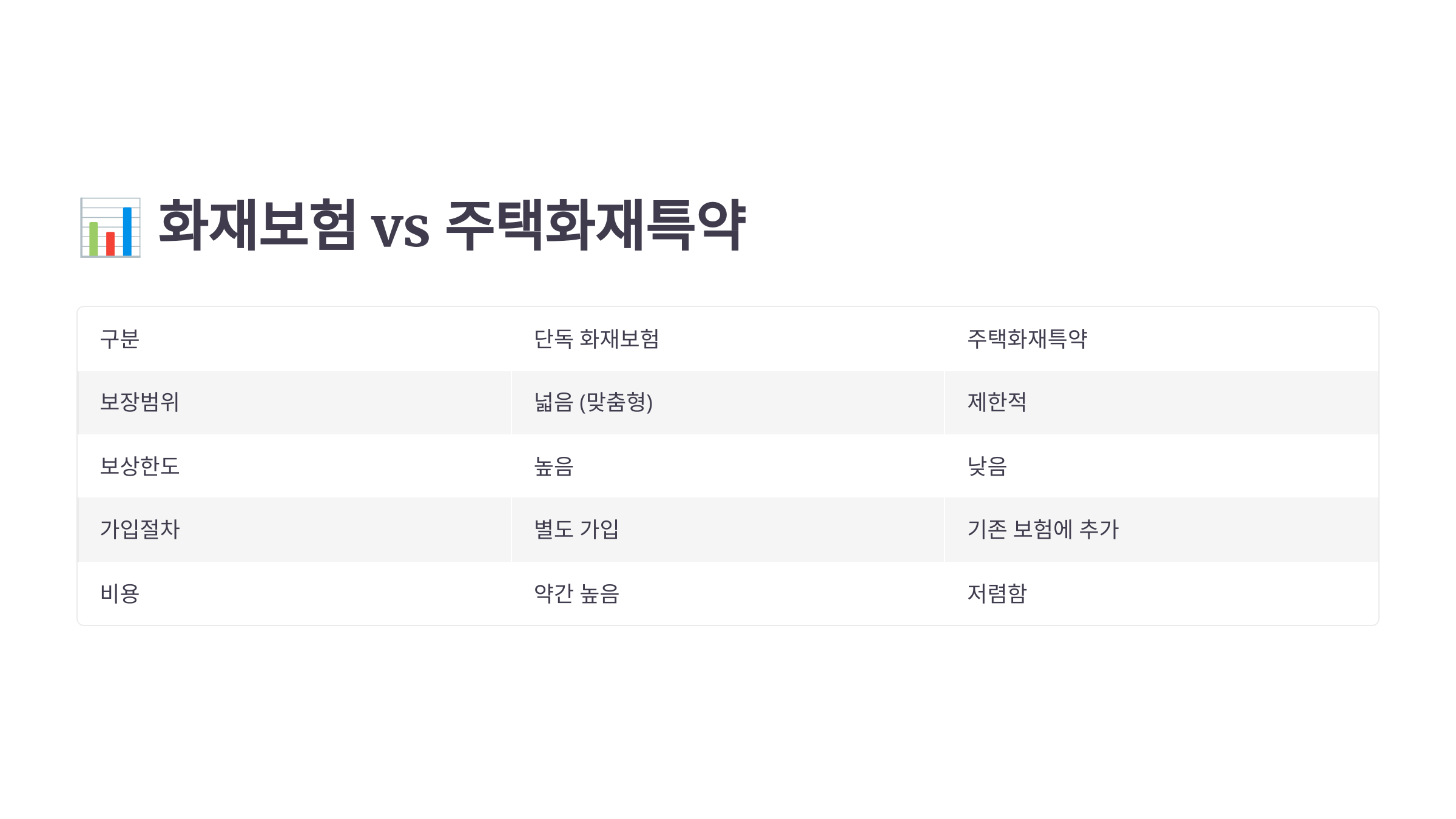 📋 화재보험과 주택화재특약 비교표