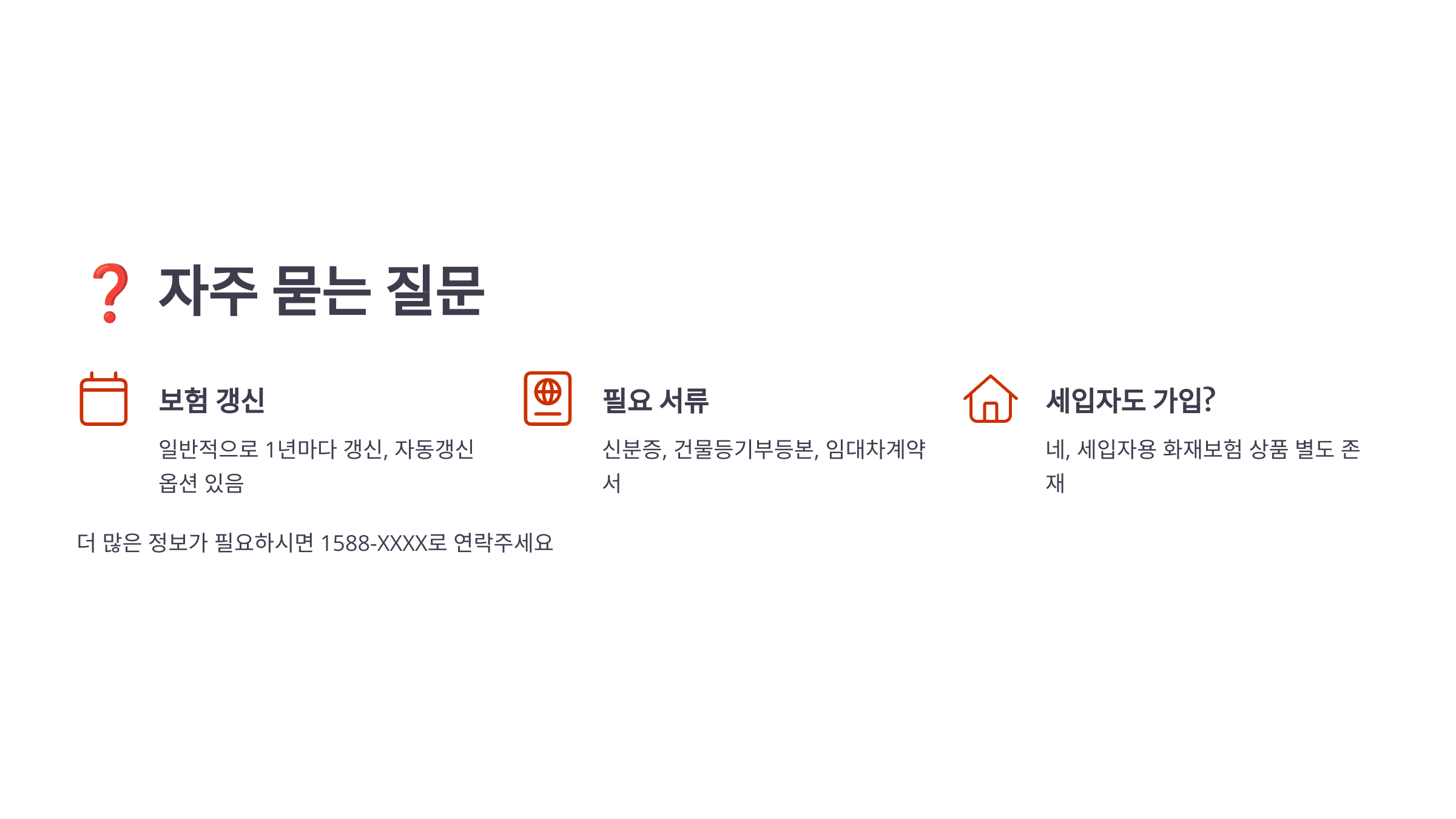 | 임시거주비용 | 화재로 집 사용 불가 시 대체 숙소 비용 지원 |