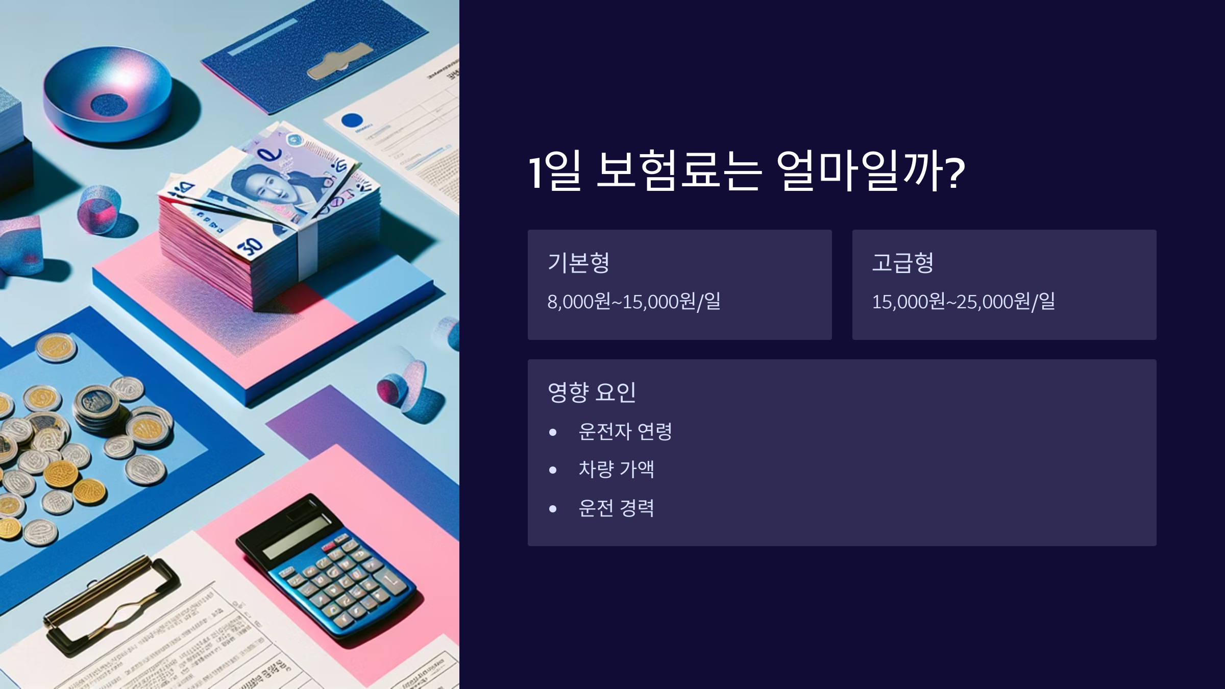 그럼 이제 많은 분들이 가장 궁금해하는 부분, 바로 가격! 하루 보험료가 얼마나 드는지 알아볼게요.