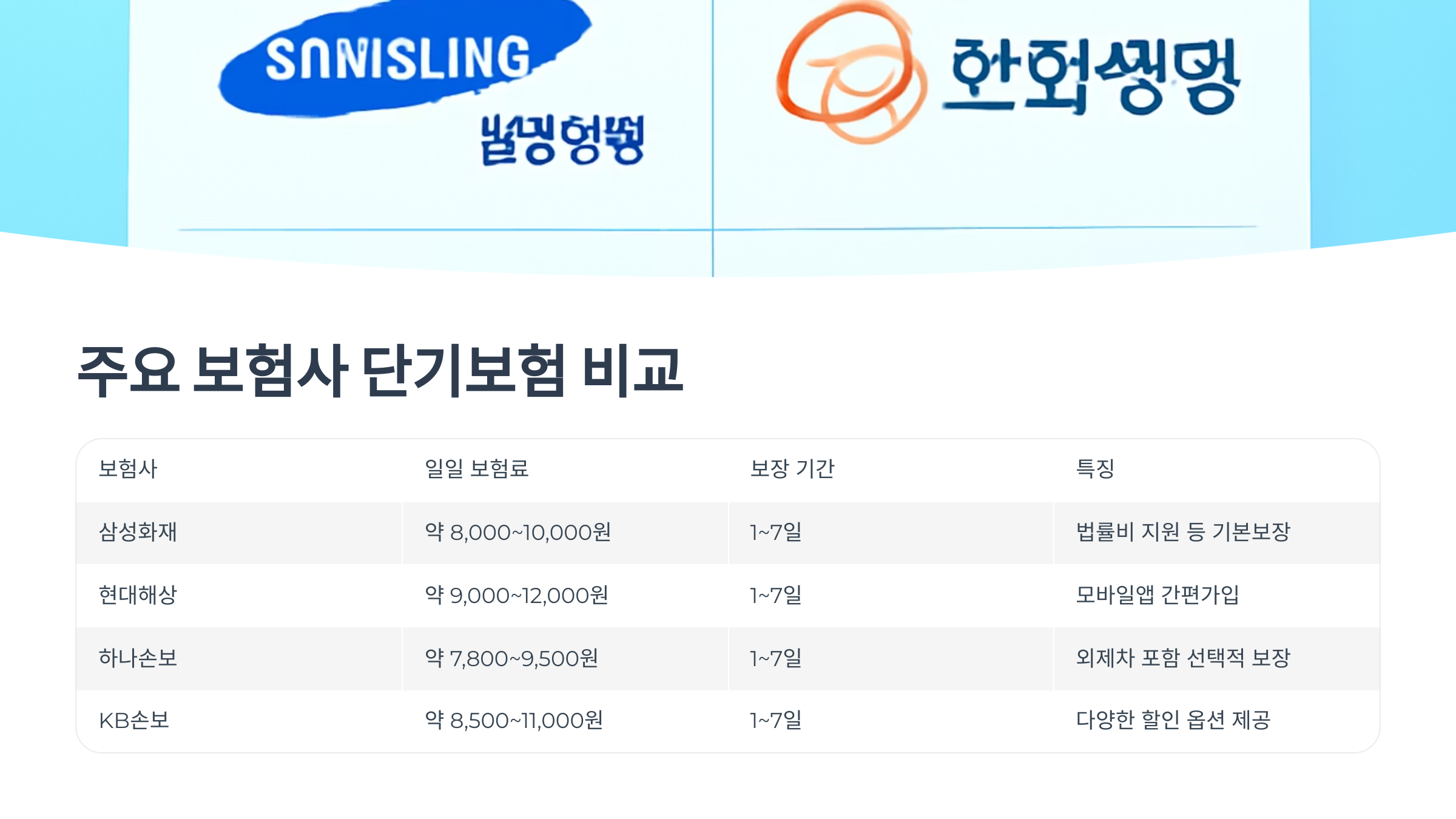 그래서 단기 자동차보험은 선택이 아닌 **‘안전벨트’** 같은 존재예요. 실제로 2025년 기준, 한화손해보험, DB손해보험, 삼성화재, 현대해상 등 대부분의 대형 보험사에서 단기보험 서비스를 제공하고 있어요.