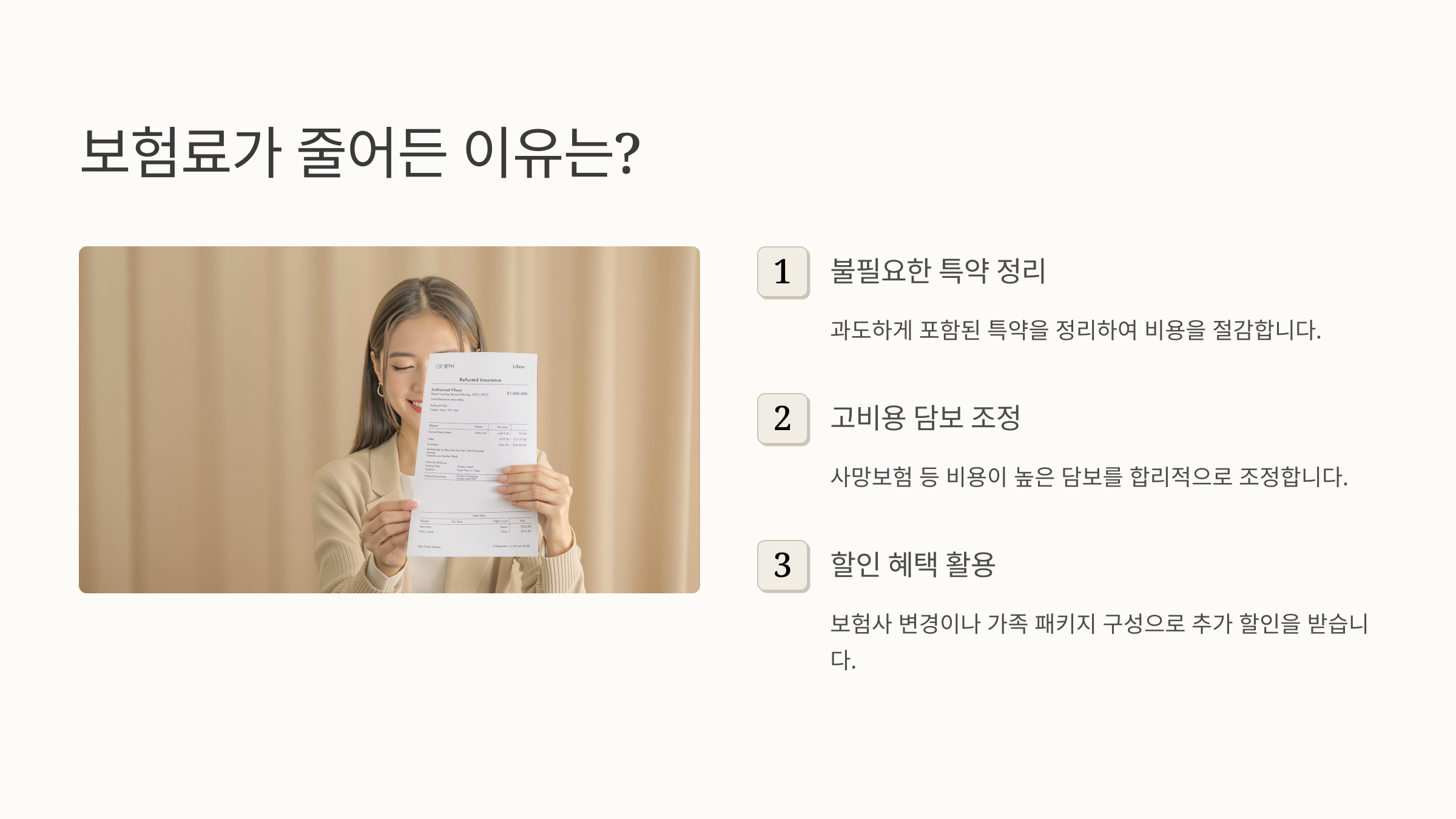 | 불필요한 특약 | 현재 상황에 맞지 않거나 중복된 보장 정리 |