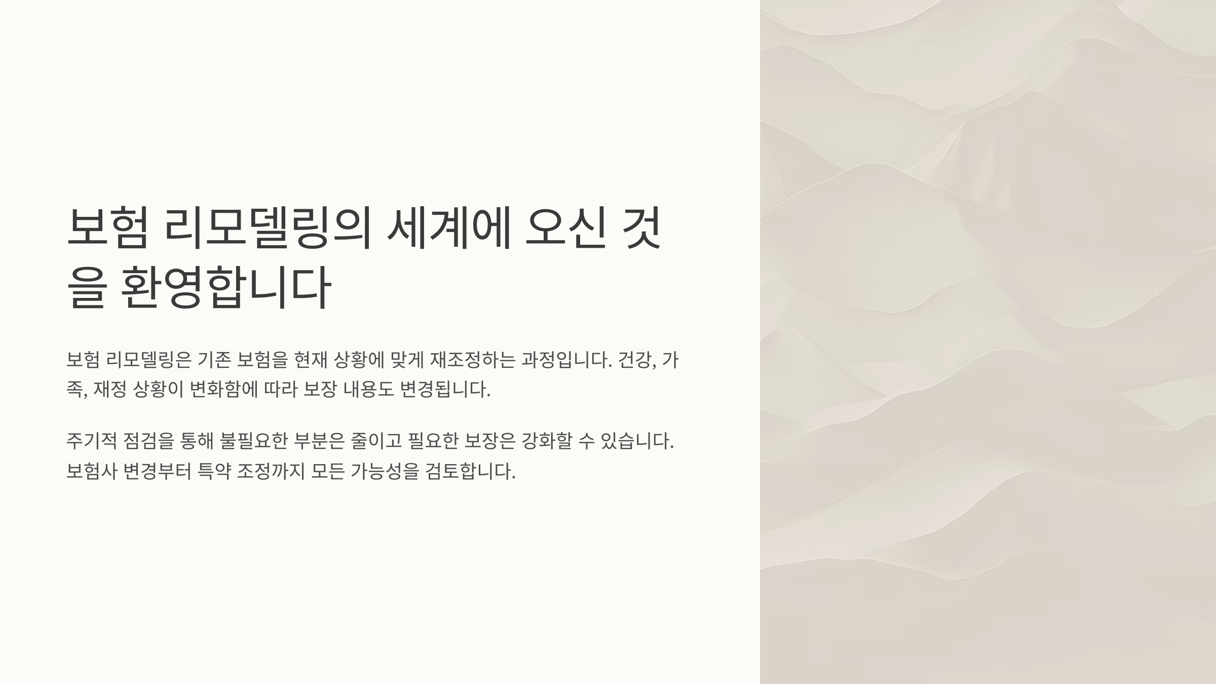 보험 리모델링은 단순히 보험료를 줄이는 게 목적이 아니에요. 나에게 꼭 필요한 보장은 유지하고, 중복되거나 불필요한 보장을 줄여서 효율을 높이는 거예요. 보험의 목적은 결국 ‘위험 대비’이니까, 그 위험을 가장 효율적으로 관리할 수 있도록 다시 짜는 과정이죠.