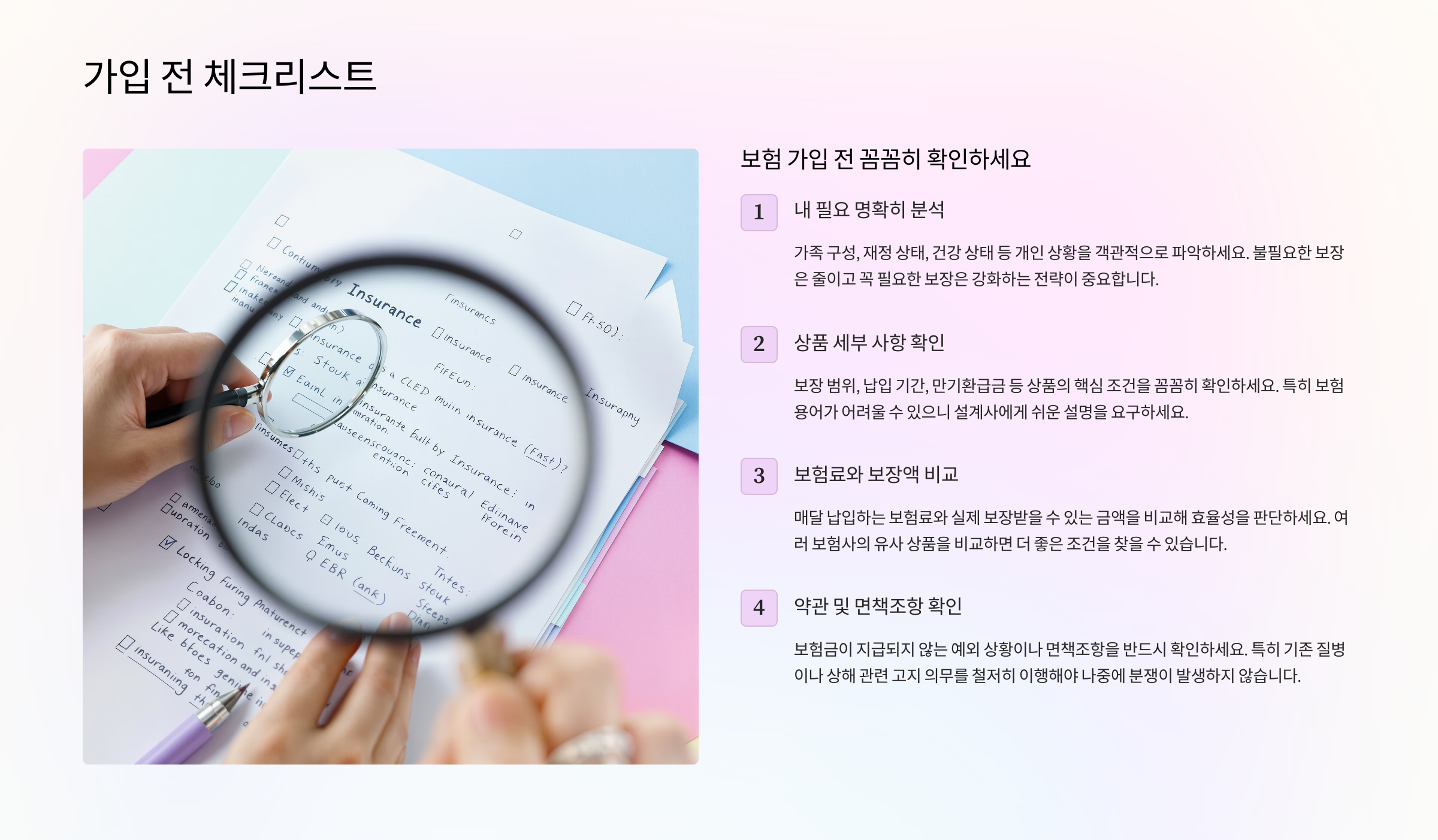 📌 보험 가입 전 확인 항목 요약표