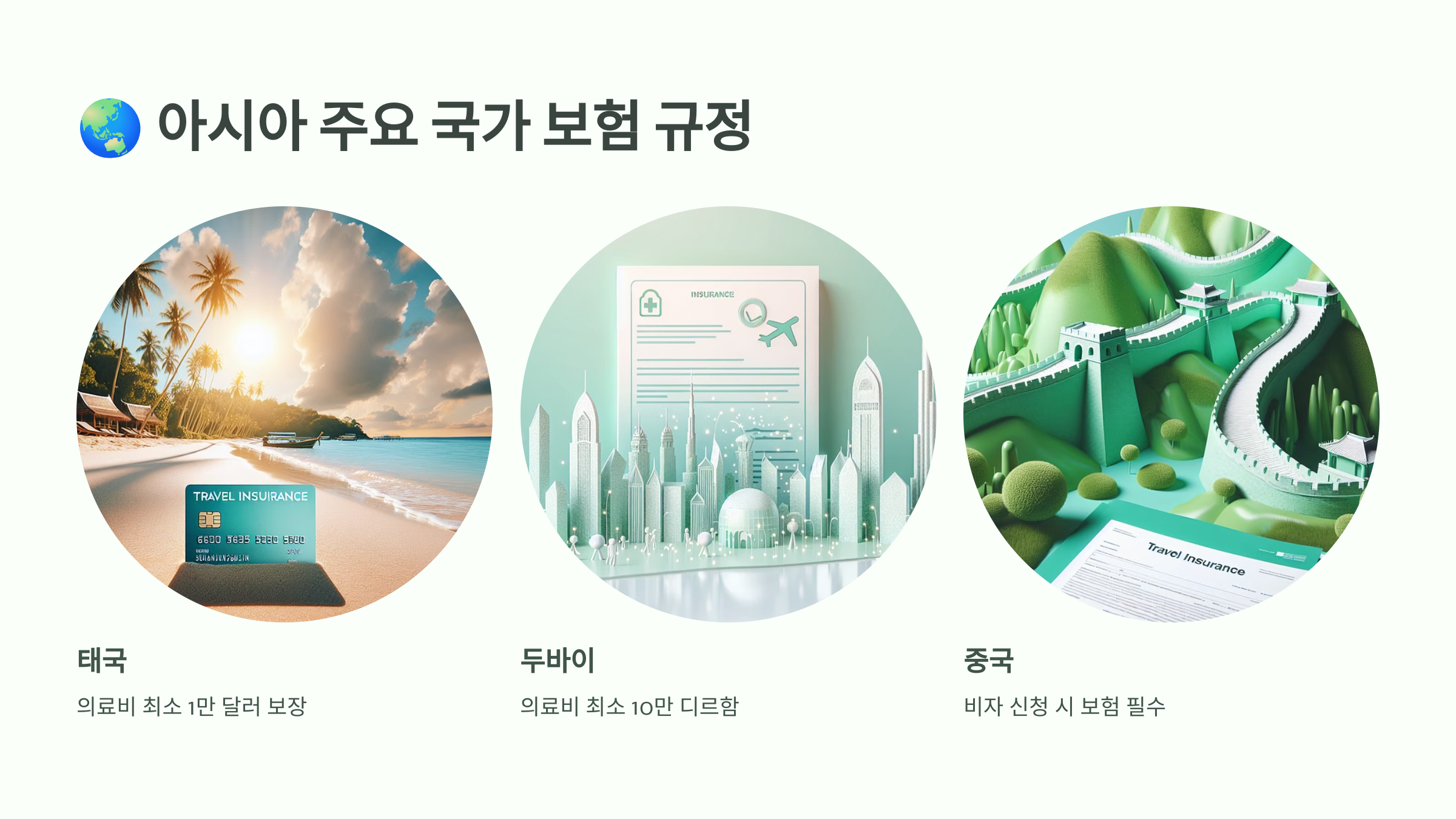 아시아는 다양한 문화권과 입국 조건이 섞여 있는 만큼, 여행자 보험 규정도 나라마다 달라요. 어떤 국가는 아직까지 의무는 아니지만 강력히 권장하고 있고, 일부 국가는 명확하게 보험 가입을 요구하고 있죠.🌱