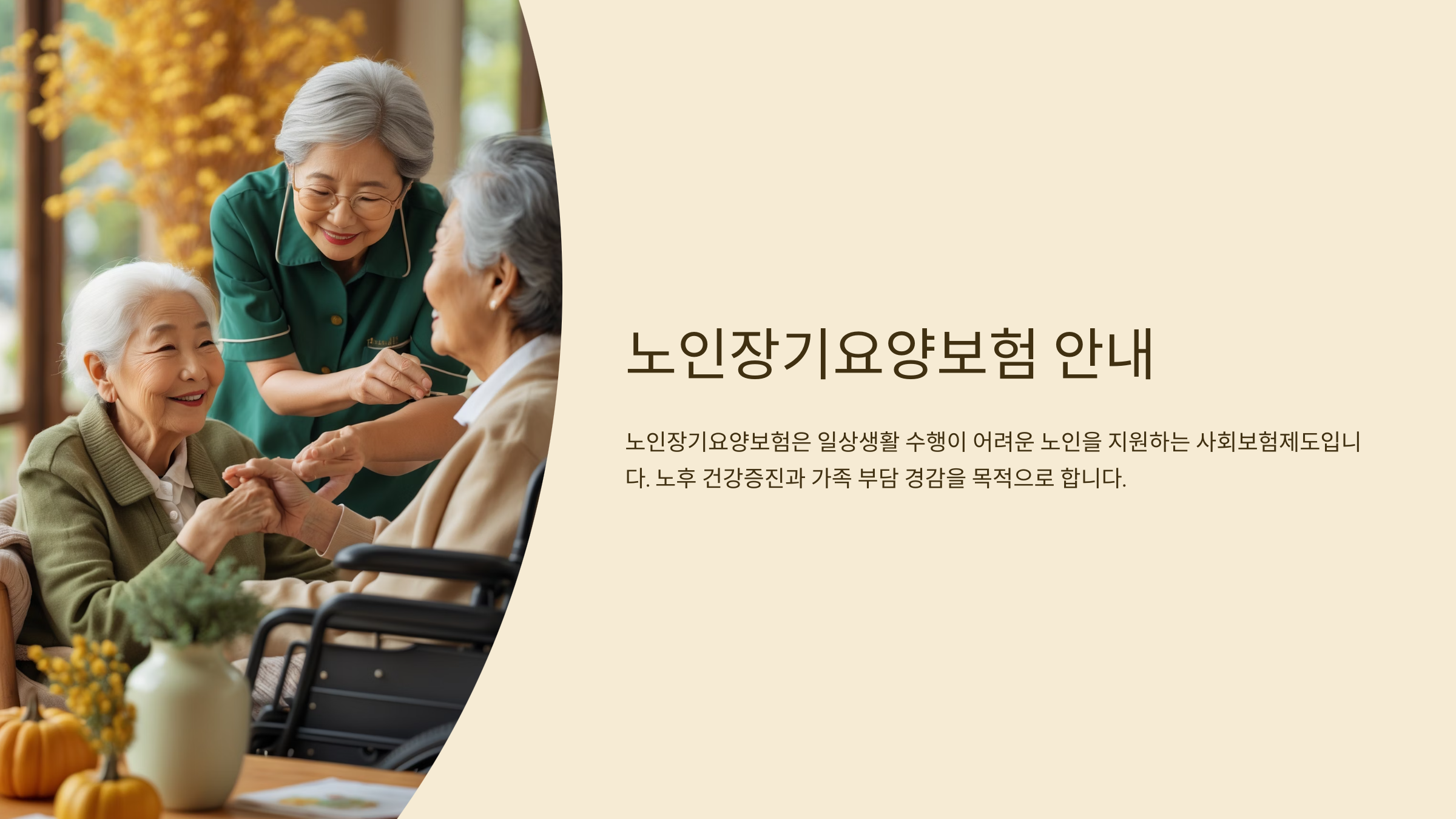 예를 들어, 어르신이 혼자 식사나 목욕을 하기 어렵거나, 일상생활을 유지하기 힘들어지면, 이 보험에서 요양보호사나 시설을 통해 도움을 받을 수 있어요. 이런 돌봄 서비스가 바로 ‘장기요양급여’라고 불러요.