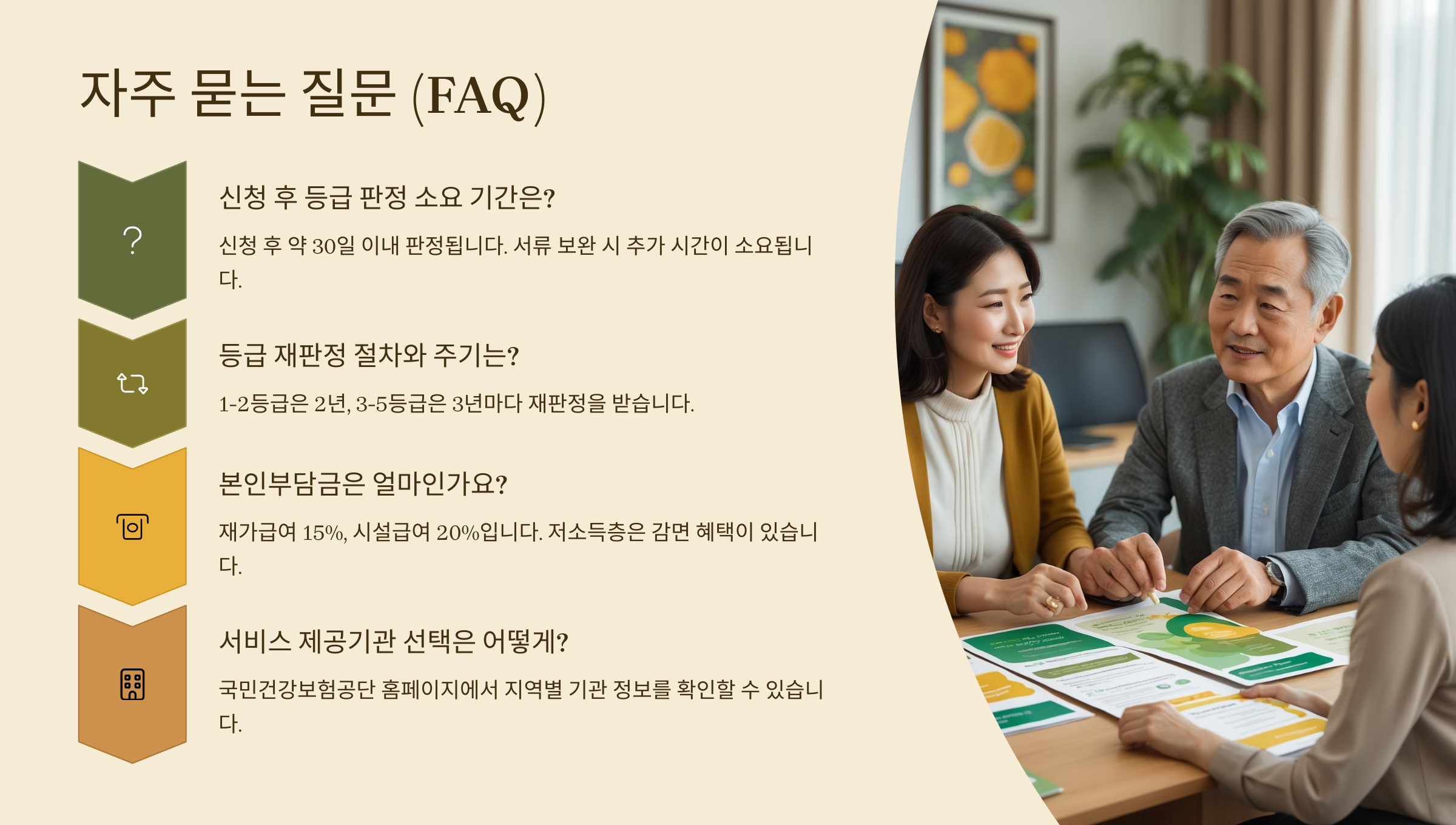 또, 방문조사 결과가 등급에 큰 영향을 미치니까 부모님의 현재 상태를 정확히 전달하는 게 정말 중요해요. 조사 때는 평소 생활 모습 그대로 보여주시는 게 좋아요.